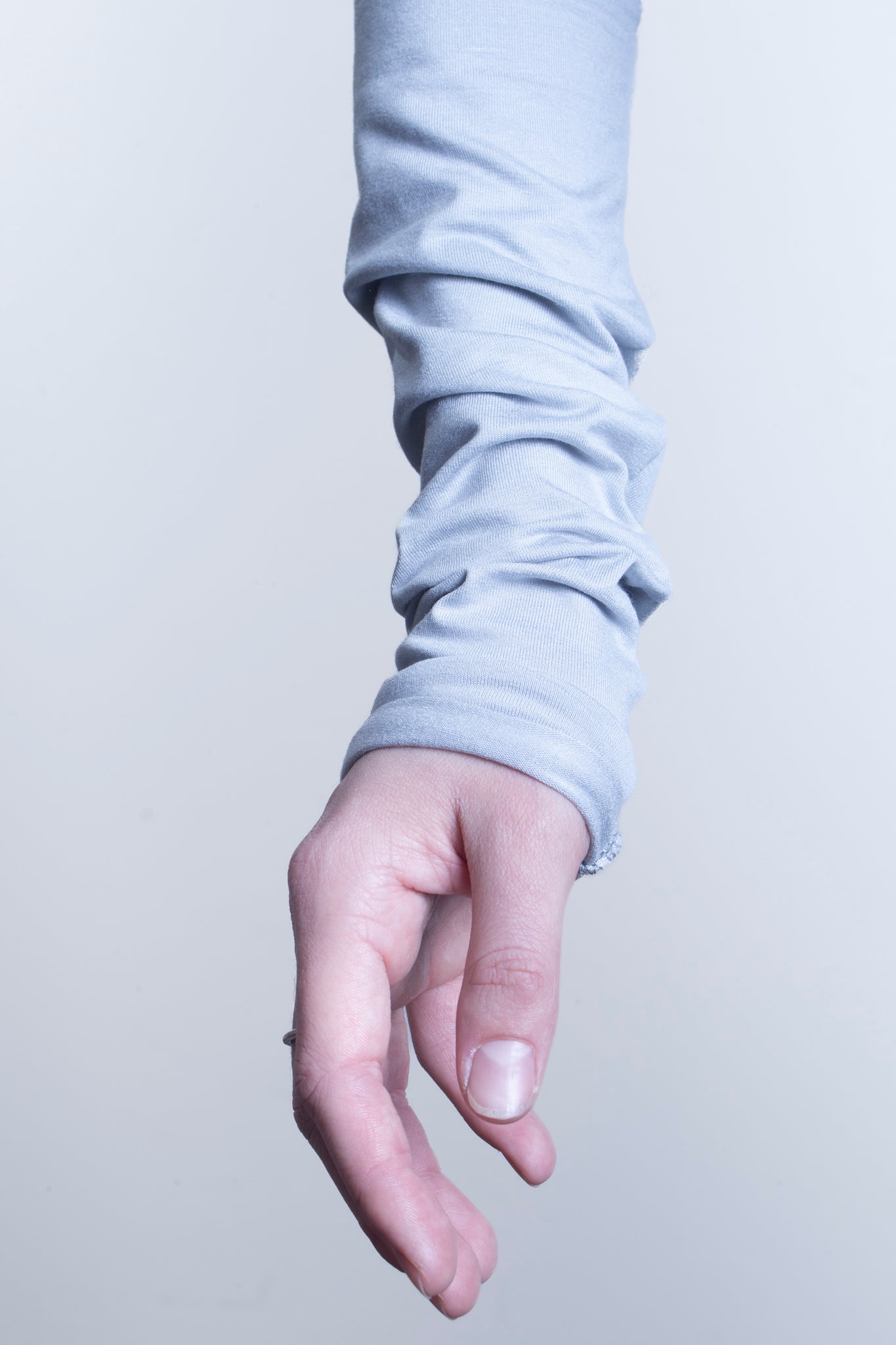This draped asymmetric turtleneck is crafted from luxurious viscose jersey, chosen for its soft handfeel, elegant movement, and natural breathability. The fabric falls effortlessly around the body, creating a play of shadow and volume that shifts with every gesture.